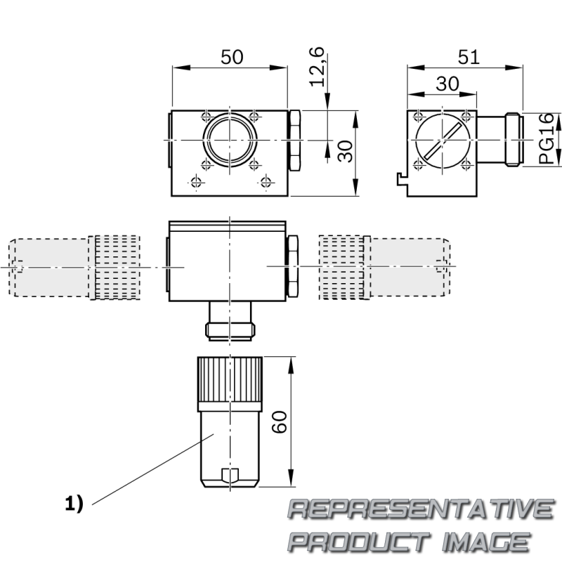 | Cable bushing, housing | 1 seal with bore 2x 5.5 mm, 1x 3.5 mm, 1 seal, adaptable, max. Ø 14 mm | ||